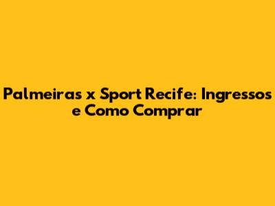 Onde Comprar Ingressos para Palmeiras x Sport Recife: Guia Completo