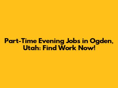 Part-Time Evening Jobs In Ogden, Utah: Find Work Now!