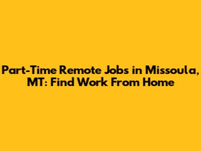 Part-Time Remote Jobs In Missoula, MT: Find Work From Home