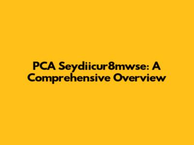 PCA Seydiicur8mwse: A Comprehensive Overview