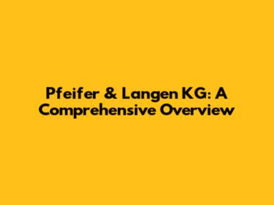 Pfeifer & Langen KG: A Comprehensive Overview