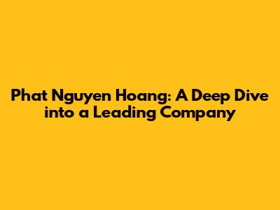 Phat Nguyen Hoang: Your Guide To A Leading Company