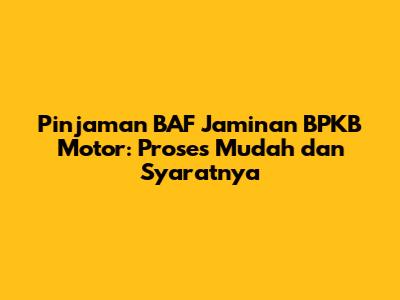 Hey guys! Lagi cari pinjaman dana tunai dengan proses yang super mudah dan cepat? Pinjaman BAF (Bussan Auto Finance) dengan jaminan BPKB motor bisa jadi solusi yang tepat buat kamu, lho! Di artikel ini, kita bakal bahas semuanya tentang pinjaman BAF jaminan BPKB motor, mulai dari keunggulannya, syarat pengajuannya, prosesnya, sampai tips biar pengajuan kamu disetujui. Jadi, simak terus ya!