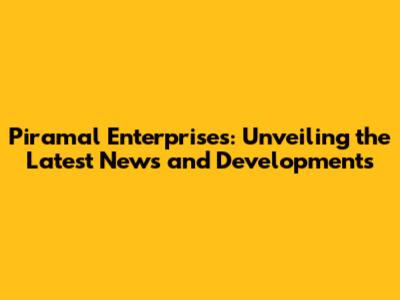Piramal Enterprises: News, Updates, And Insights
