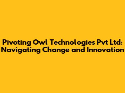 In the dynamic world of technology, the ability to adapt and evolve is crucial for survival and success. Pivoting Owl Technologies Pvt Ltd stands as a testament to this principle, showcasing how a company can navigate change, embrace innovation, and emerge stronger than ever. This article delves into the journey of Pivoting Owl Technologies, exploring its origins, the challenges it faced, the strategic pivots it undertook, and the lessons it learned along the way. We'll examine how the company leveraged its core competencies, identified new opportunities, and cultivated a culture of continuous improvement to achieve sustainable growth and market leadership.