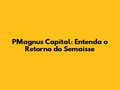 PMagnus Capital: Entenda O Retorno Do Semaisse