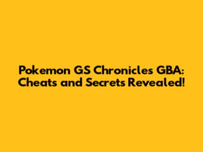 So there you have it – a comprehensive guide to cheats, secrets, and tips for Pokemon GS Chronicles on the GBA! Whether you're looking to speed up your progress, explore hidden areas, or simply have more fun, these cheats and strategies will help you on your journey to becoming a Pokemon master. Remember to use cheats responsibly and enjoy the game to its fullest. Happy training, and catch 'em all!