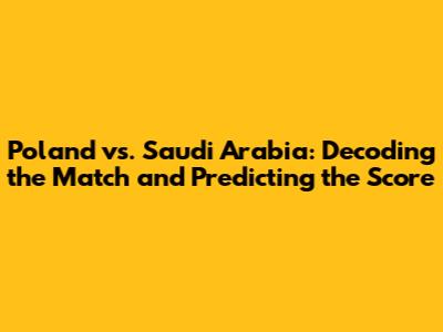 Poland Vs. Saudi Arabia: Match Analysis And Score Predictions