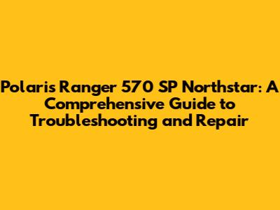 Polaris Ranger 570 SP Northstar: Troubleshoot & Fix