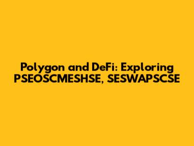 Polygon And DeFi: PSEOSCMESHSE, SESWAPSCSE Explained
