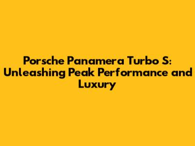 Porsche Panamera Turbo S: A Deep Dive