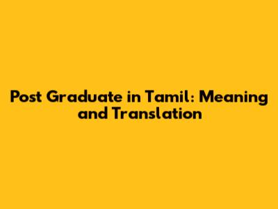 Post Graduate In Tamil: Meaning And Translation