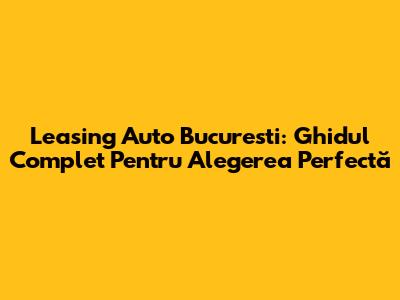 Leasing Auto Bucuresti: Ghidul Complet Pentru Alegerea Perfectă