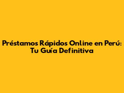 Préstamos Rápidos Online En Perú: Guía Completa