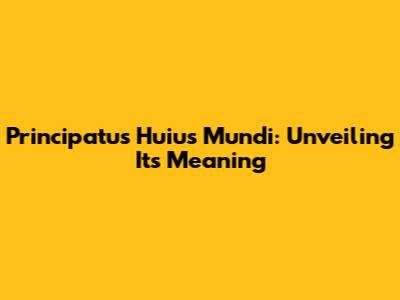 Principatus Huius Mundi: Unveiling Its Meaning