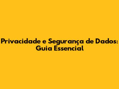 Privacidade E Segurança De Dados: Guia Essencial