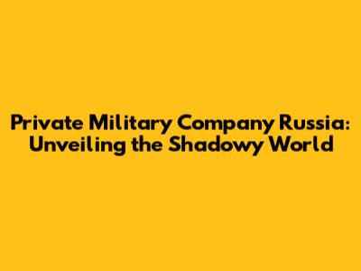 Private Military Company Russia: Unveiling The Shadowy World