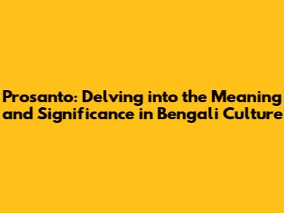 Prosanto: Meaning, Origin, And Significance In Bengali Culture
