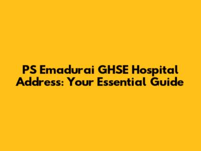 PS Emadurai GHSE Hospital: Your Guide To Location & Services