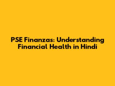 PSE Finanzas: Understanding Financial Health In Hindi