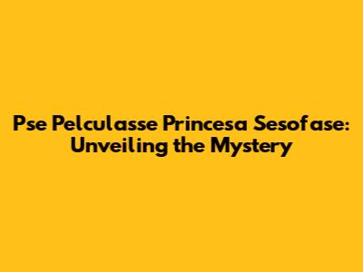 Pse Pelculasse Princesa Sesofase: Unveiling The Mystery