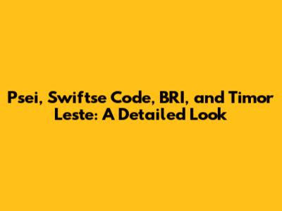 Psei, Swiftse Code, BRI, And Timor Leste: A Detailed Look
