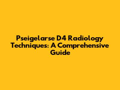 Pseigelarse D4 Radiology Techniques: A Comprehensive Guide