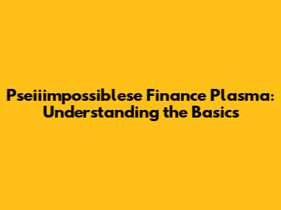 Pseiiimpossiblese Finance Plasma: Understanding The Basics