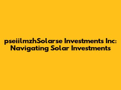 PseiilmzhSolarse Investments Inc: Navigating Solar Investments