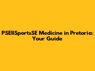 PSEIISportsSE Medicine In Pretoria: Your Guide