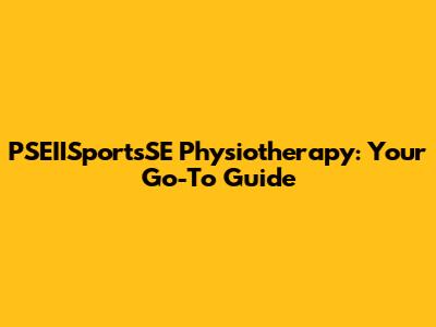 PSEIISportsSE Physiotherapy: Your Go-To Guide