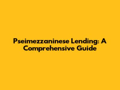 Pseimezzaninese Lending: A Comprehensive Guide
