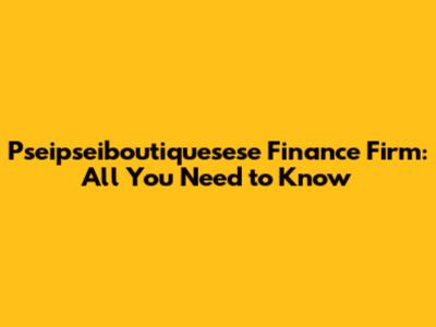 Pseipseiboutiquesese Finance Firm: All You Need To Know