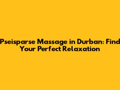 Hey guys! Looking for the ultimate relaxation experience in Durban? Let's dive into the world of pseisparse massage! This unique therapy is designed to rejuvenate your body and mind, leaving you feeling refreshed and revitalized. In this article, we'll explore everything you need to know about pseisparse massage around Durban, including its benefits, what to expect during a session, and how to find the best therapists in the area. So, kick back, relax, and let's get started!