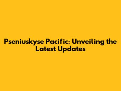 Pseniuskyse Pacific: Unveiling The Latest Updates