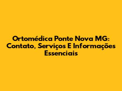 Ortomédica Ponte Nova MG: Contato, Serviços E Informações Essenciais