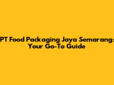 PT Food Packaging Jaya Semarang: Your Go-To Guide