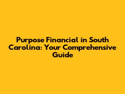Purpose Financial In South Carolina: Your Comprehensive Guide