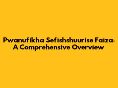 Pwanufikha Sefishshuurise Faiza: A Comprehensive Overview