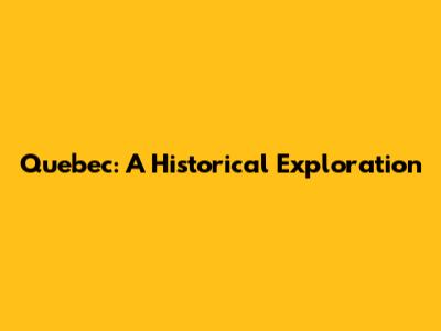 Quebec: A Historical Exploration