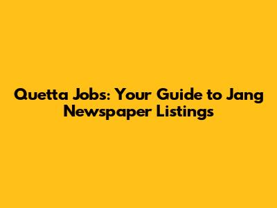 Quetta Jobs: Your Guide To Jang Newspaper Listings