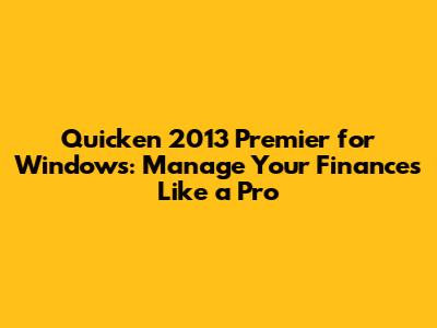 Are you looking for a reliable and comprehensive solution to manage your finances? Quicken 2013 Premier for Windows might just be what you need. This version of Quicken offers a range of features designed to help you stay on top of your financial life, from budgeting and tracking expenses to managing investments and planning for taxes. Let's dive into what makes Quicken 2013 Premier a solid choice for Windows users.