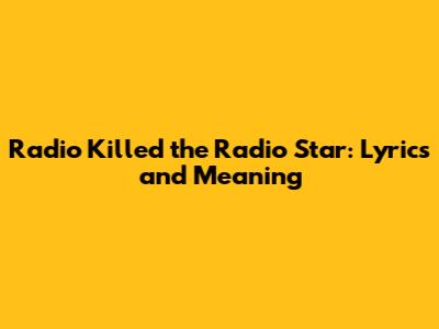 Hey guys! Ever heard that catchy tune, "Radio Killed the Radio Star"? It's a classic! But have you ever stopped to think about what the lyrics really mean? This song isn't just a fun 80s hit; it's got a pretty interesting story behind it. Let's dive into the lyrics and uncover the meaning behind this iconic song.