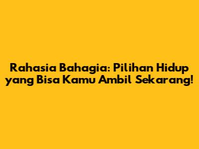 Rahasia Bahagia: Pilihan Hidup Yang Bisa Kamu Ambil Sekarang!