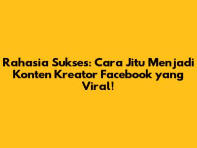 Rahasia Sukses: Cara Jitu Menjadi Konten Kreator Facebook Yang Viral!