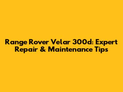 Range Rover Velar 300d: Expert Repair & Maintenance Tips