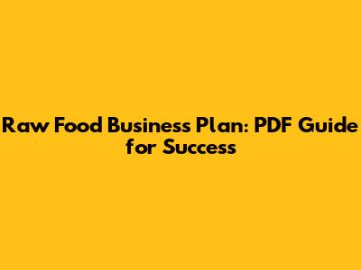 Embarking on a raw food business venture? You're likely seeking a comprehensive raw food business plan PDF to guide you. Starting a business in the raw food industry can be incredibly rewarding, offering a chance to promote health and wellness while tapping into a growing market. However, like any business, success hinges on meticulous planning and a clear understanding of the market, operations, and financial aspects. Let's dive into creating a robust business plan that will set you up for success. This guide will walk you through the essential elements of crafting a winning business plan, specifically tailored for a raw food venture. We will cover everything from market analysis and defining your target audience to outlining your operational strategy and projecting financial performance. By the end of this guide, you'll have a solid framework to develop your own detailed raw food business plan, increasing your chances of securing funding, attracting investors, and achieving long-term sustainability. So, whether you're dreaming of opening a raw food café, launching a line of raw snacks, or providing raw food meal delivery services, this guide is designed to equip you with the knowledge and tools you need to succeed in the dynamic world of raw food entrepreneurship. Remember, a well-structured business plan is not just a formality; it's your roadmap to turning your passion for raw food into a thriving and impactful business. It demonstrates your seriousness, attracts potential partners and investors, and helps you stay focused and adaptable in the face of challenges. Let's get started and transform your raw food vision into a tangible, profitable reality.