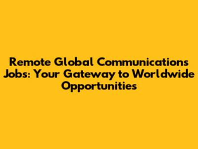 Remote Global Communications Jobs: Your Gateway To Worldwide Opportunities