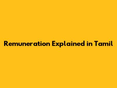 Remuneration Explained In Tamil