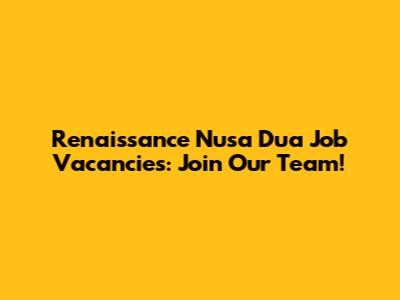 Renaissance Nusa Dua Job Vacancies: Join Our Team!